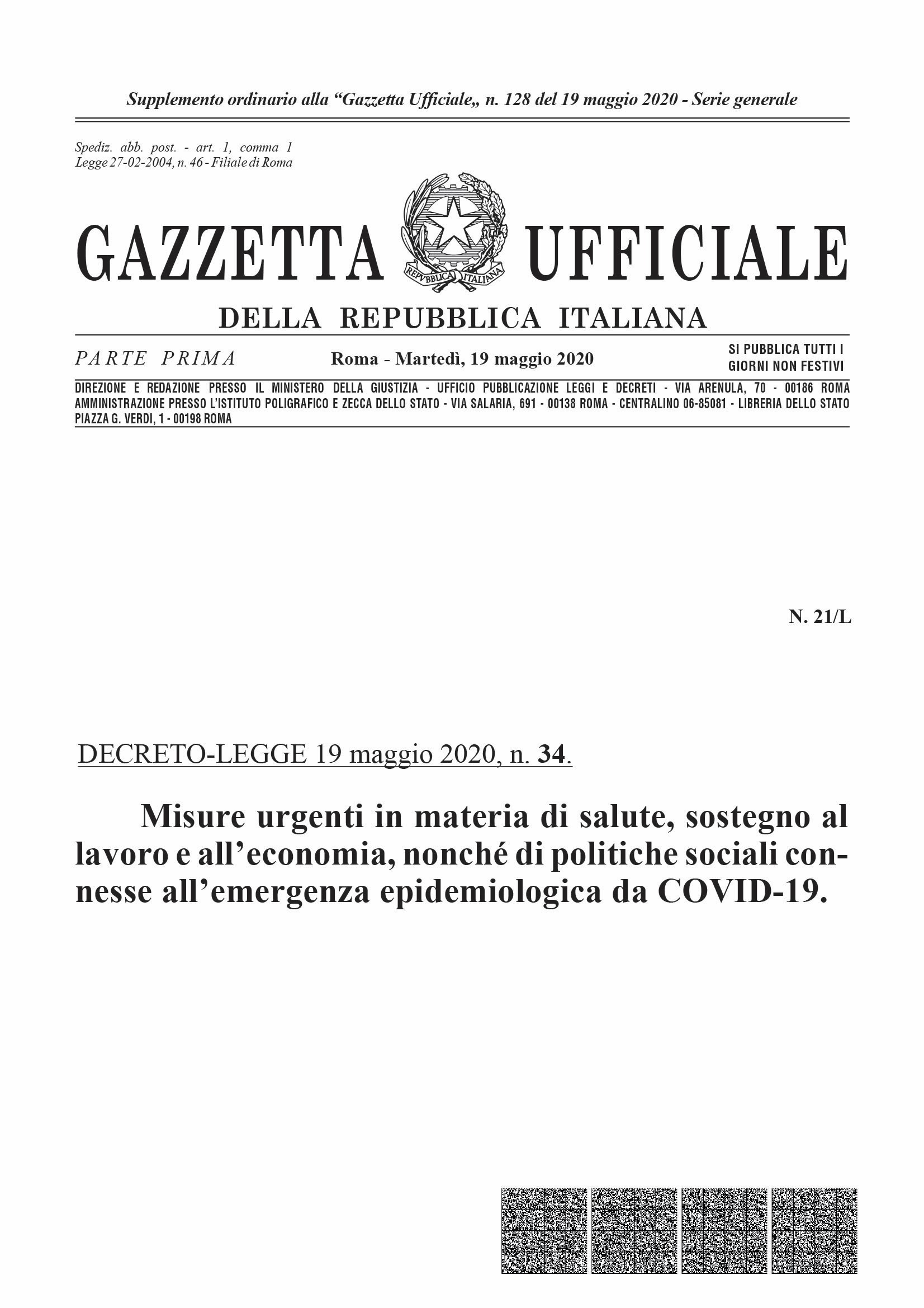 Il 18 maggio 2020 è stato pubblicato in G.U. il Decreto Legge n. 34 del 18 maggio 2020 chiamato Decreto "Rilancio" all'interno del quale vengono introdotte diverse misure economiche per contrastare la crisi scaturita con la pandemia del Covid-19.